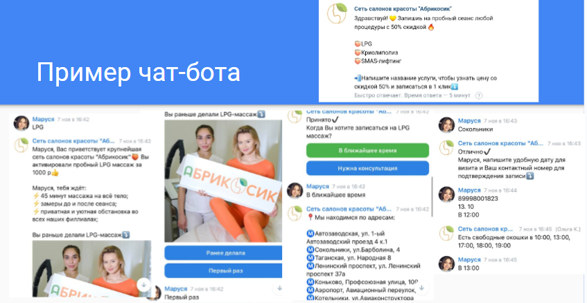 • Рекомендуется настроить приветственные сообщения для новых подписчиков и чат-боты для упрощения процесса оформления заявок.