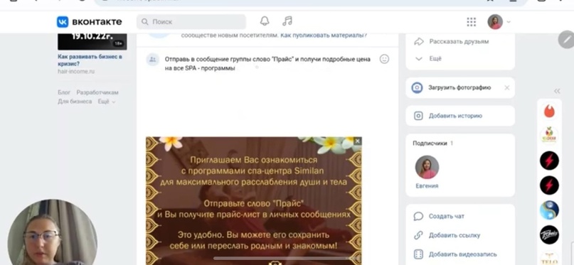 Настройка сообщества Вконтакте для СПА-салона в Эрзине
