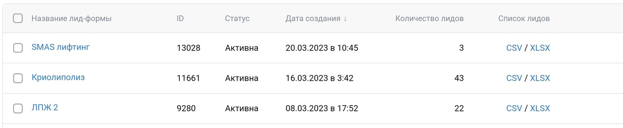 На удивление «выстрелили» лид-формы.